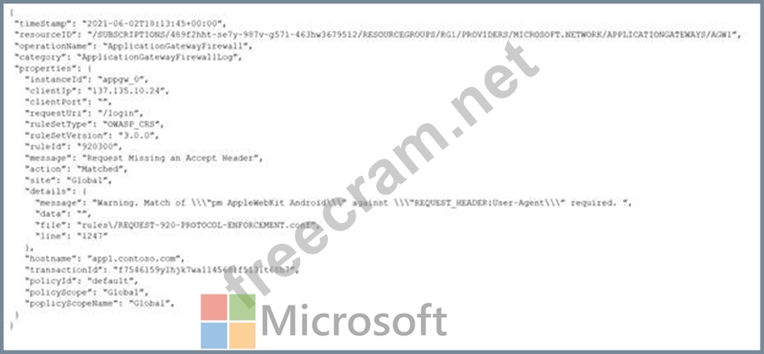 Solution: You create a WAF policy exclusion for request headers that contain 137.135.10.24.