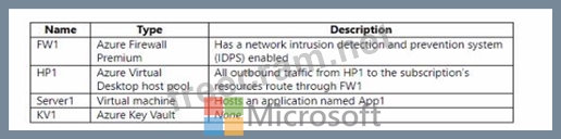 You need to ensure that the IDPS on FW1 can identify security threats in the connections from HP1 to Server1.