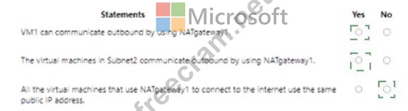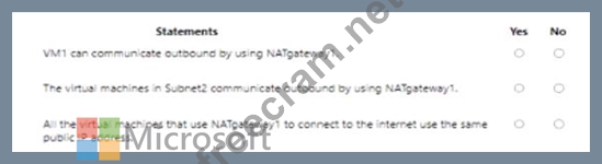 1) NAT gateway can provide outbound connectivity for virtual machines from other availability zones different from itself. The virtual machine’s subnet needs to be configured to the NAT gateway resource to provide outbound connectivity. Additionally, multiple subnets can be configured to the same NAT gateway resource.