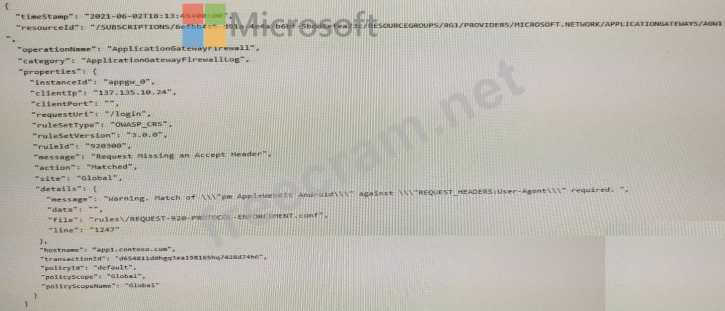 Solution: You create a WAF policy exclusion request headers that contain 137.135.10.24.