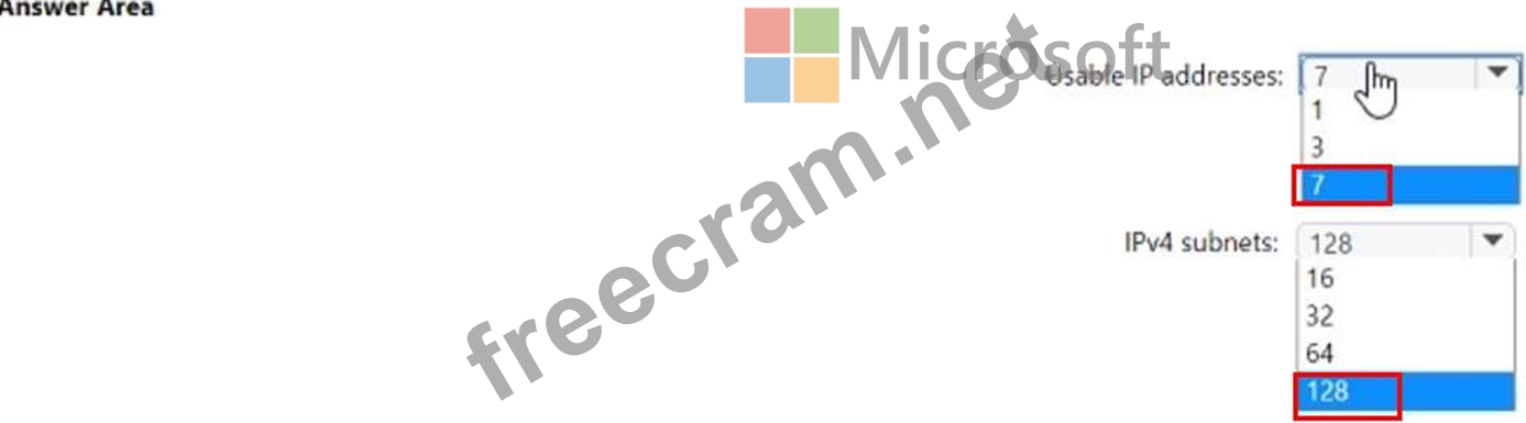Answer is correct it is 3 IPs and 32 Subnets as smallest subnet in Azure is /29 dues to 5 reserved IPs out of any subnet and largest is /2 - example here from MS