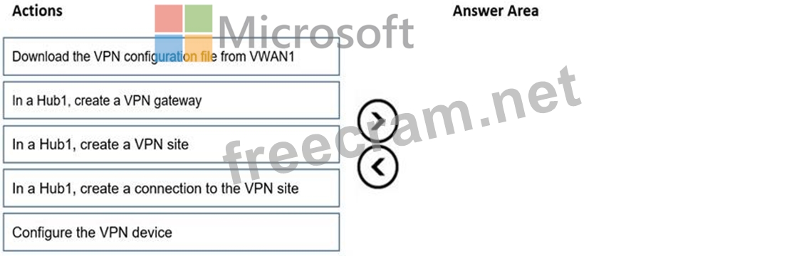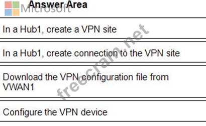 You have an Azure virtual WAN named VWAN1 that has a hub named Hub1. Hub1 connects two of the three on-premises sites by using a Site-to-Site VPN connection.