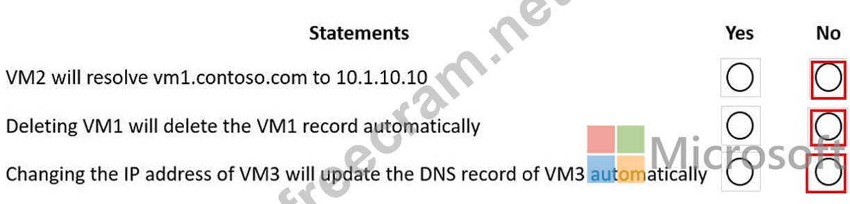 You have an Azure private DNS zone named contoso.com that is linked to the virtual networks shown in the following table.
