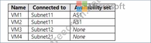 The subscription contains the virtual machines shown in the following table.