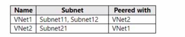 You have an Azure subscription that contains the virtual networks shown in the following table.