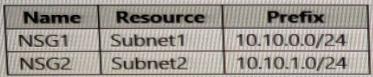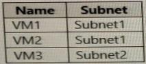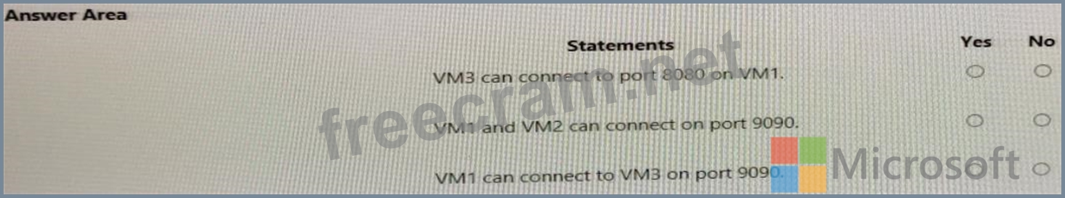 VM1 & VM2 is in Subnet1. NSG1 applies. Only traffic on ports 80 and 443 will be allowed. Connection on port 9090 will be denied.