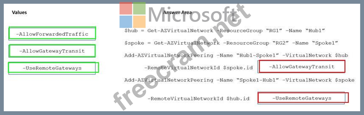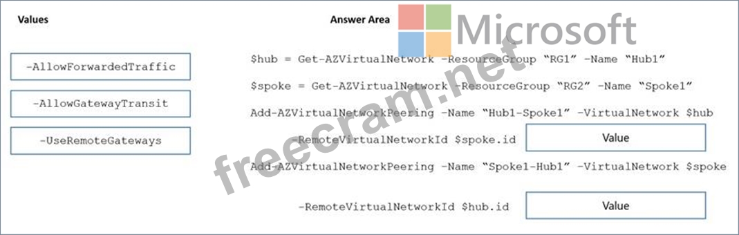 How should you complete the PowerShell script? To answer, drag the appropriate values to the correct targets. Each value may be used once, more than once, or not at all. You may need to drag the split bar between panes or scroll to view content.