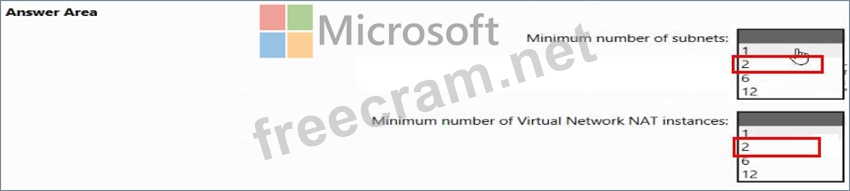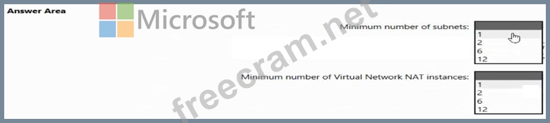 You need to identify the minimum number of subnets and Virtual Network NAT instances required to meet the following requirements: