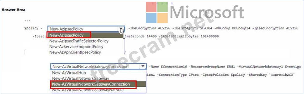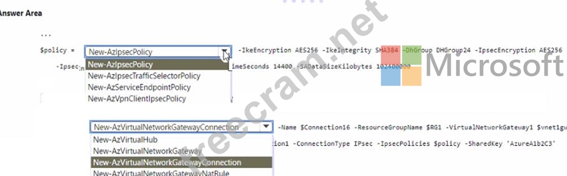 How should you complete the PowerShell script? To answer, select the appropriate options in the answer area.