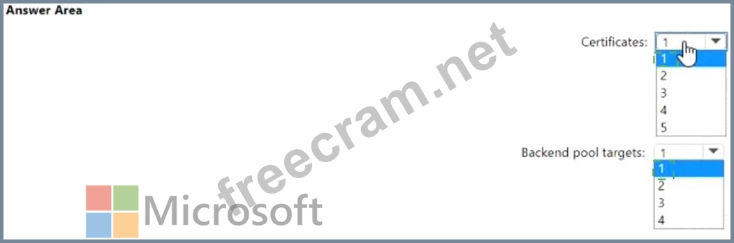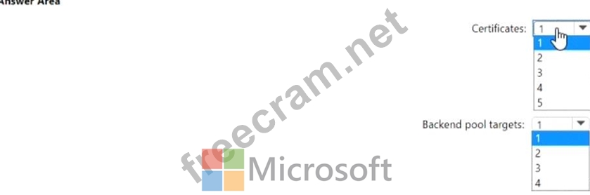 How many locations should you import to the certificate, and how many targets should you add to the backend pool of AG1? To answer, select the appropriate options in the answer area.