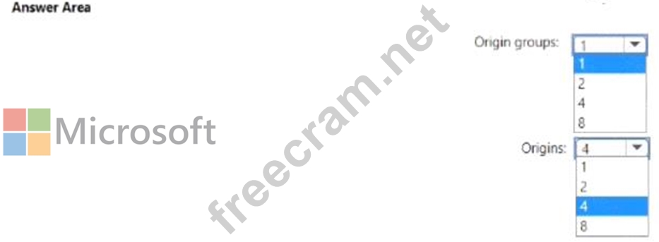 2 origins: Your App Service app might be configured to scale out across worker instances, but from Front Door's perspective there's a single origin.