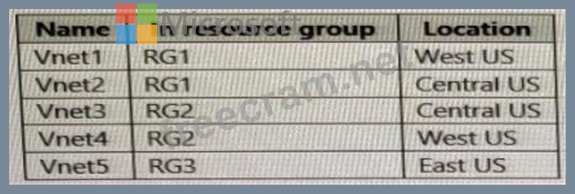 You have an Azure subscription that contains the virtual networks shown in the following table.