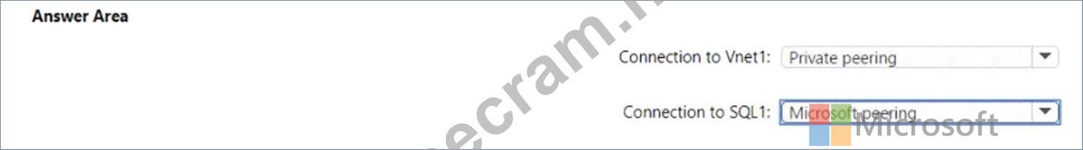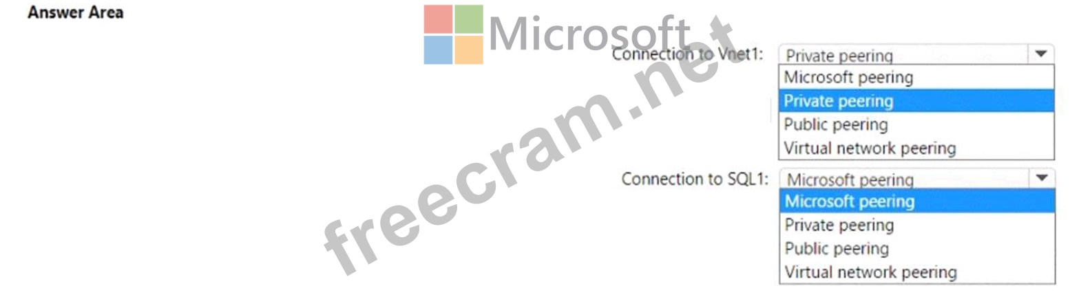 Which type of peering should you use for each connection? To answer, select the appropriate options in the answer area.