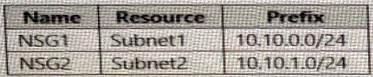Question 51: You create NSG10 and NSG11 to meet the network security requ...