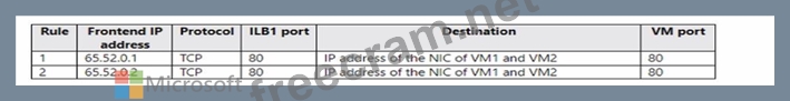 You have an internal Basic Azure Load Balancer named LB1 That has two frontend IP addresses. The backend pool of LB1 contains two Azure virtual machines named VM1 and VM2.