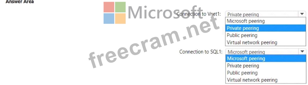Which type of peering should you use for each connection? To answer, select the appropriate options in the answer area.