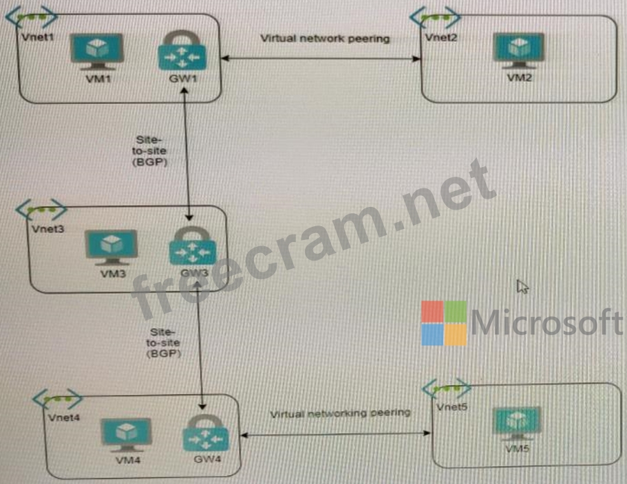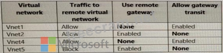 'Traffic to remove virtual network : Block' setting in Vnet5 does not block communication between VM5 and GW4, while it blocks communication between VM5 and VM4.