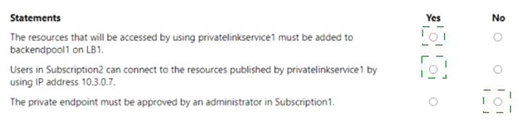 For each of the following statements, select YES if the statement is true. Otherwise. select No.