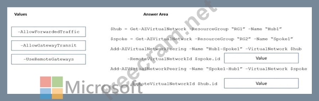 How should you complete the PowerShell script? To answer, drag the appropriate values to the correct targets.