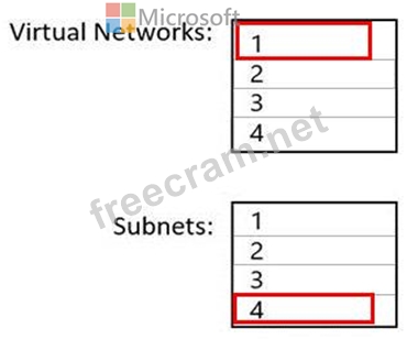 You need to identify how many virtual networks and subnets are required for the solution. The solution must minimize costs to transfer data between virtual networks.