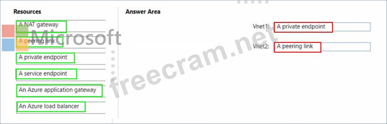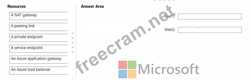What should you implement on each virtual network? To answer, drag the appropriate resources to the correct virtual networks. Each resource may be used once, more than once, or not at all. You may need to drag the split bar between panes or scroll to view content Note: Each correct selection is worth one point.