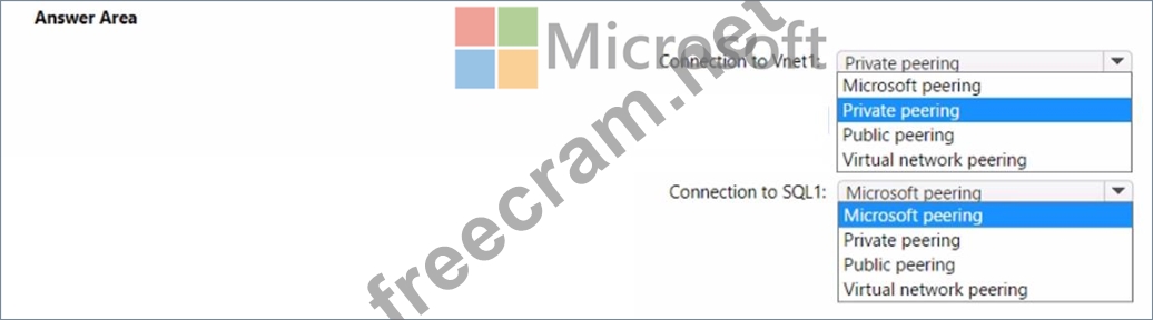Which type of peering should you use for each connection? To answer, select the appropriate options in the answer area.