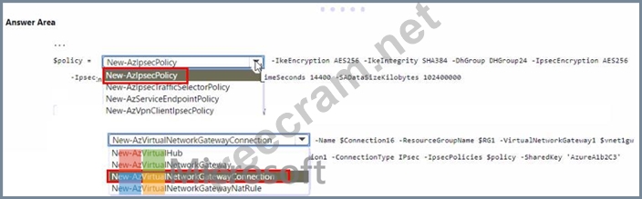 How should you complete the PowerShell script? To answer, select the appropriate options in the answer area.