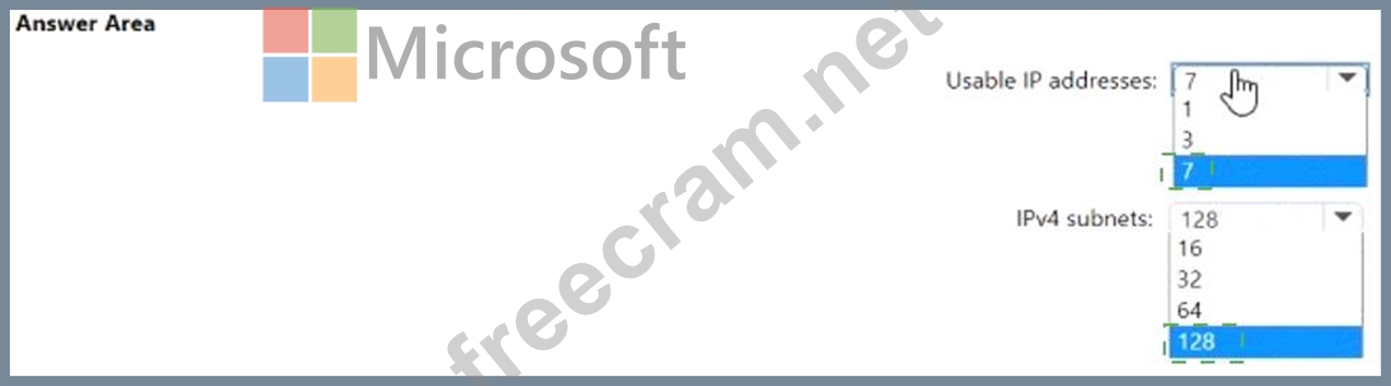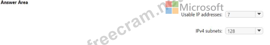 What is the maximum number of IPv4 subnets you can create, and how many usable IP addresses will be available per subnet? To answer, select the appropriate options in the answer area.