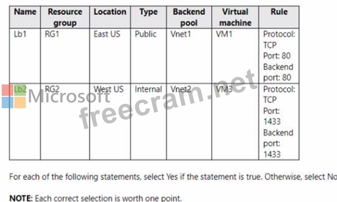 Question 56: You have the Azure load balancer shown in the Load Balancer ...