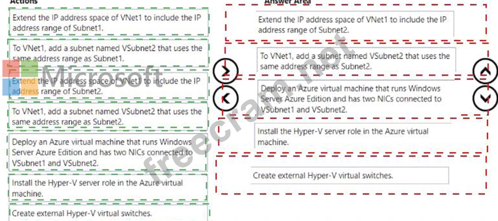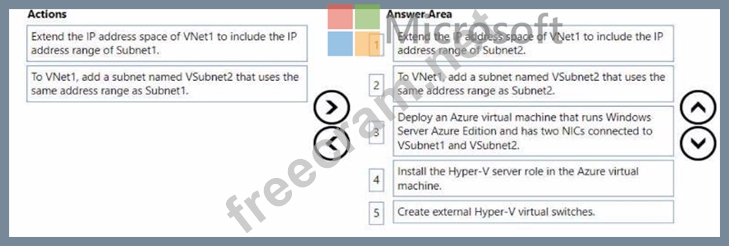 Your on-premises network contains two subnets named Subnet1 and Subnet2. Subnet2 contains a Hyper-V host that contains two virtual machines named VM1 and VM2. VM1 and VM2 are connected to Subnet2.