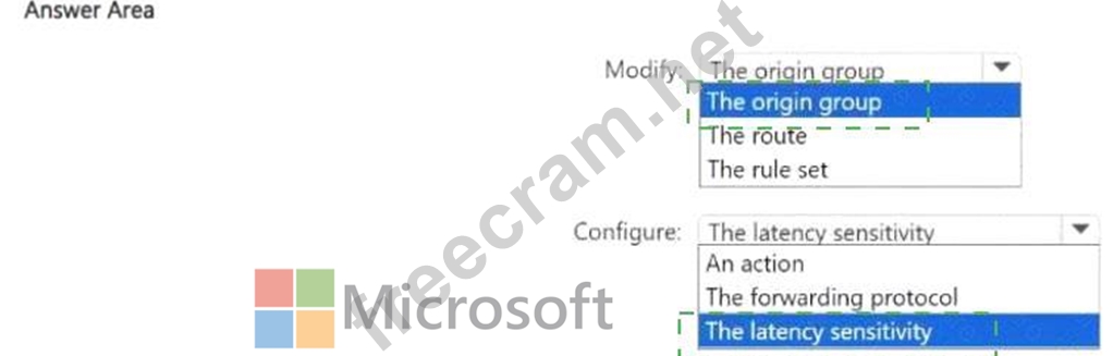 What should you modify, and what should you configure? To answer, select the appropriate options in the answer area.