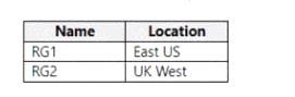 You have an Azure subscription that contains the resource groups shown in the following table.