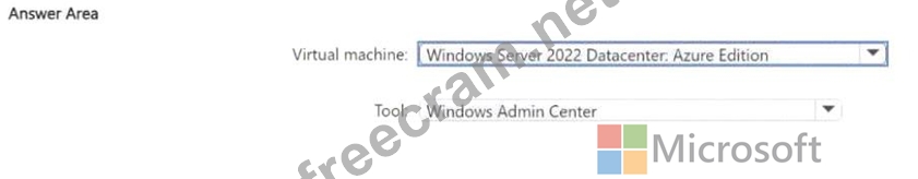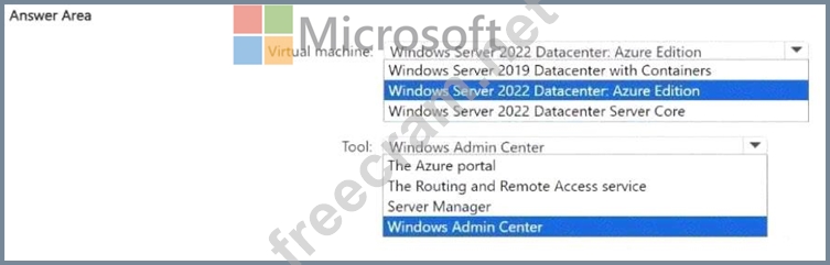 Which type of virtual machine should you deploy to VNet1, and which tool should you use to configure Azure Extended Network? To answer, select the appropriate options in the answer area.