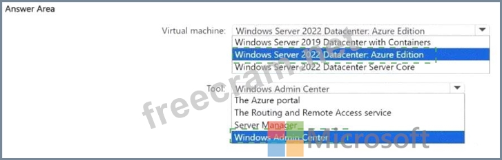 Question 3: You have an on-premises network and an Azure virtual network...