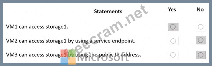 (Click the Storage1 tab.) For each of the following statements, select Yes if the statement is true. Otherwise, select No. NOTE: Each correct selection is worth one point.