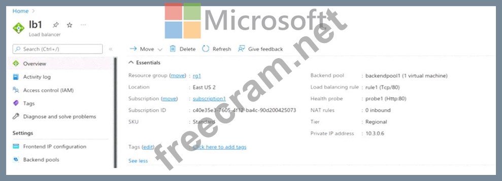 You create a load balancer name in Subscription1 and configure the backend pool shown in the lb1 exhibit.
