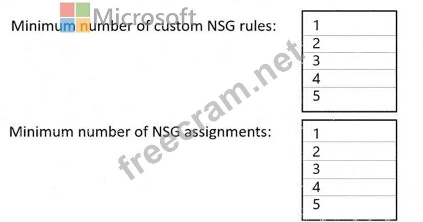 What is the minimum number of custom NSG rules and NSG assignments required? To answer, select the appropriate options in the answer area.