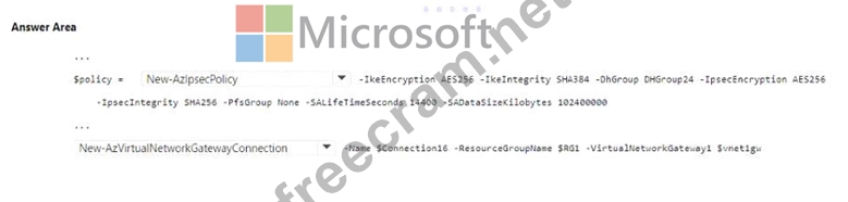 How should you complete the PowerShell script? To answer, select the appropriate options in the answer area.