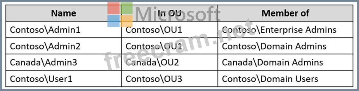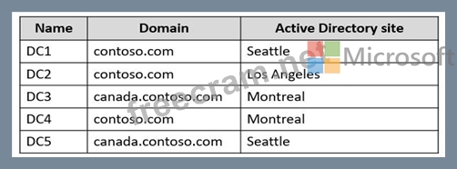 The forest contains the domain controllers shown in the following table.