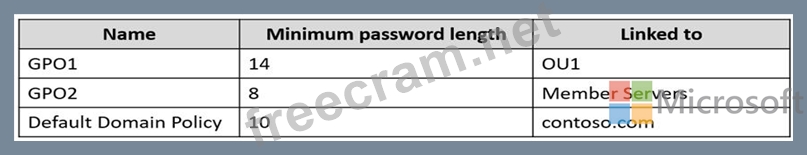 The contoso.com domain has the Group Policies Objects (GPOs) shown in the following table.