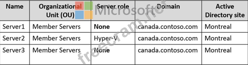 The network contains the servers shown in the following table.