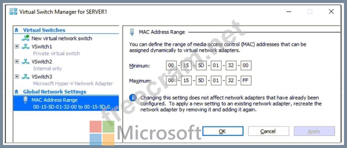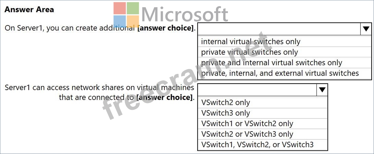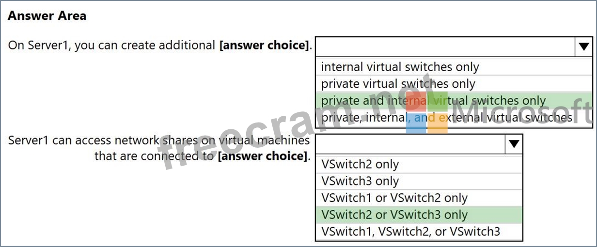 You have a server named Server1 that runs Windows Server. Server1 has a single network interface and the Hyper-V virtual switches shown in the following exhibit.