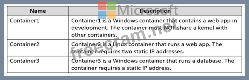 On Server1, you plan to start the containers shown in the following table.