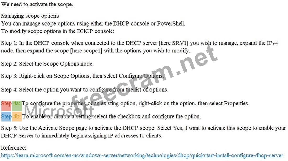 Question 7: SIMULATION You need to ensure that a DHCP scope named scope1...