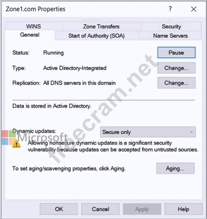 On Server1, you create a DNS zone named Zone1.com as shown in the following exhibit.