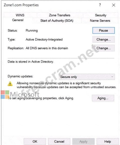 On Server1, you create a DNS zone named Zone1.com as shown in the following exhibit.