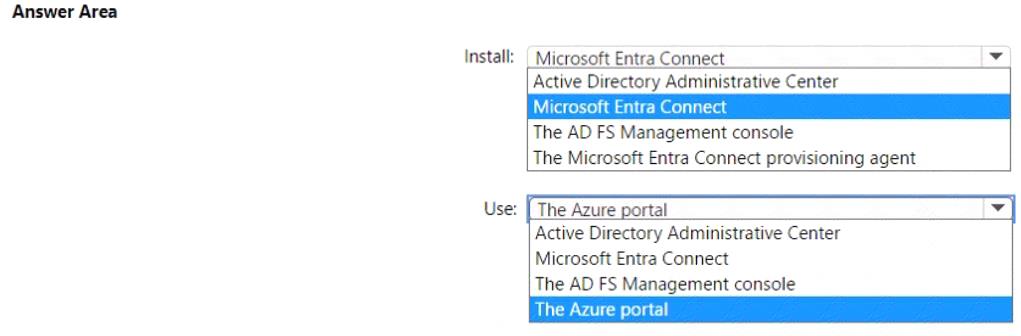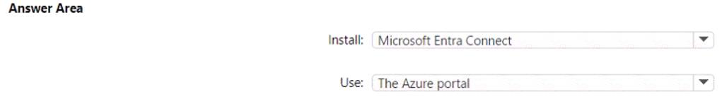 What should you install, and what should you use to enable password hash synchronization? To answer, select the appropriate options in the answer area.