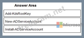 Which three PowerShell cmdlets should you run in sequence? To answer, move the appropriate cmdlets from the list of cmdlets to the answer area and arrange them in the correct order.