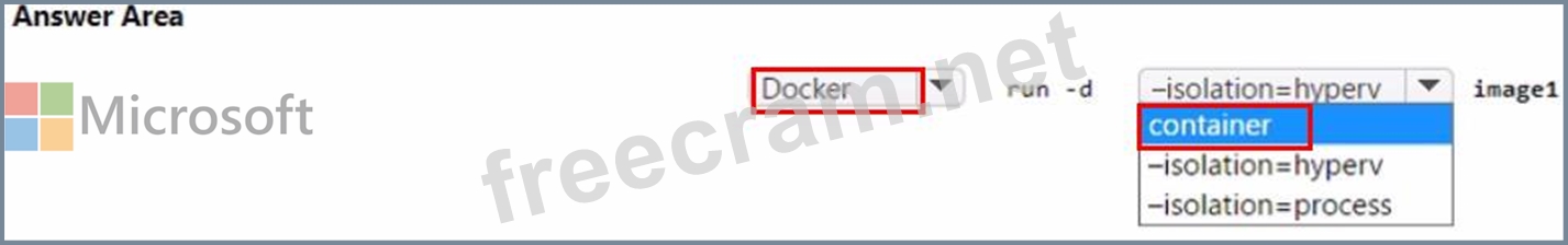 Question 24: You have a server named Server1 that hosts Windows container...