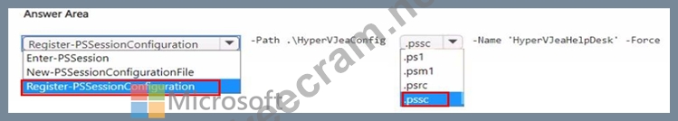How should you complete the PowerShell command? To answer, select the appropriate options in the answer area.